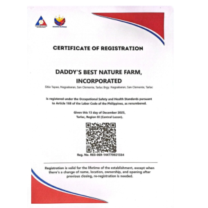 I am thankful to Daddy’s Best Nature Farm for entrusting me with the responsibility to lead the Compliance Unit. As Compliance Coordinator, I take pride in collaborating with various agencies on regulations, permits, certifications, and audits. Being involved in setting up the company’s system standards is a meaningful role, and I look forward to contributing to its continued growth and excellence.